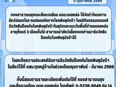 - ประกาศองค์การบริหารส่วนตำบลดอยหล่อ เรื่อง ประกาศข้อมูลสาระสำคัญในสัญญา ตามแบบ สขร.1 ประจำเดือน มกราคม 2569(04 ก.พ. 69)