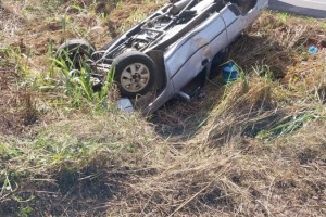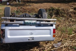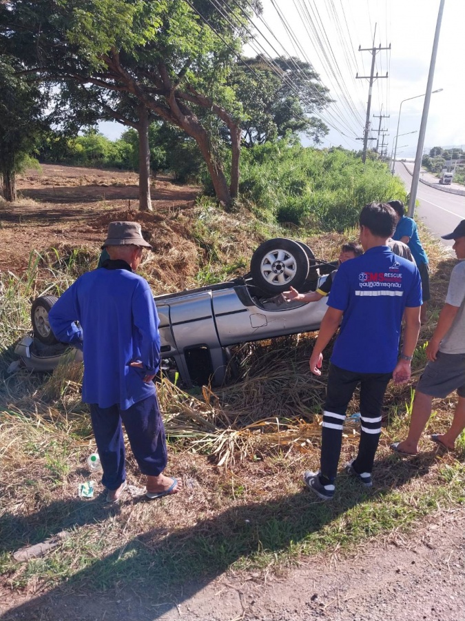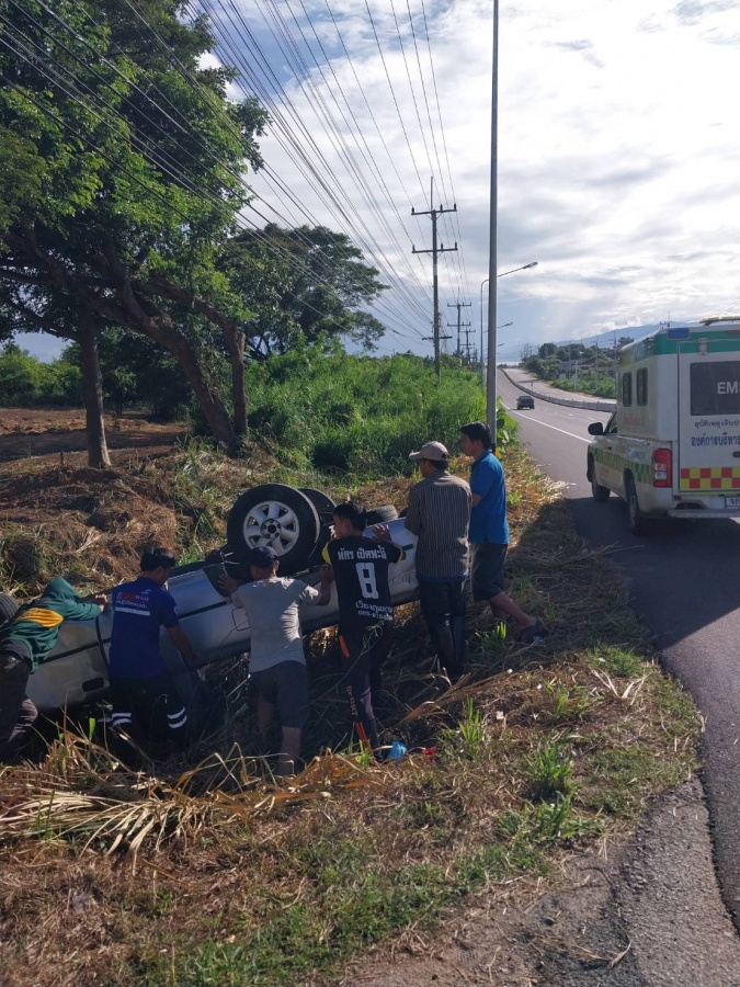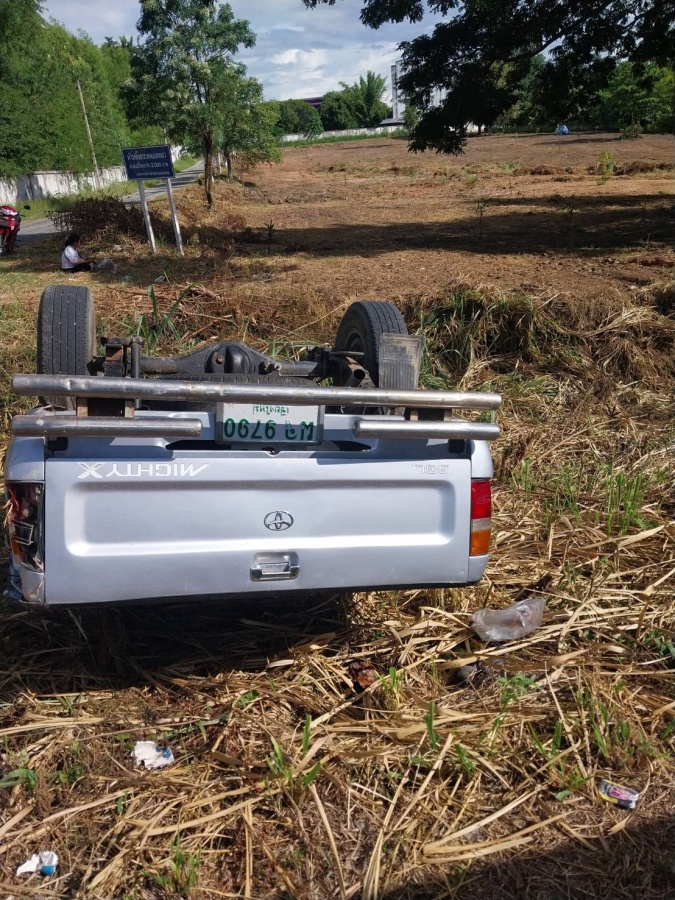 รถกระบะพลิกคว่ำเอง พื้นที่หมู่ที่ 14 บ้านหลังม่อน ที่เกิดเหตุพบผู้บาดเจ็บ