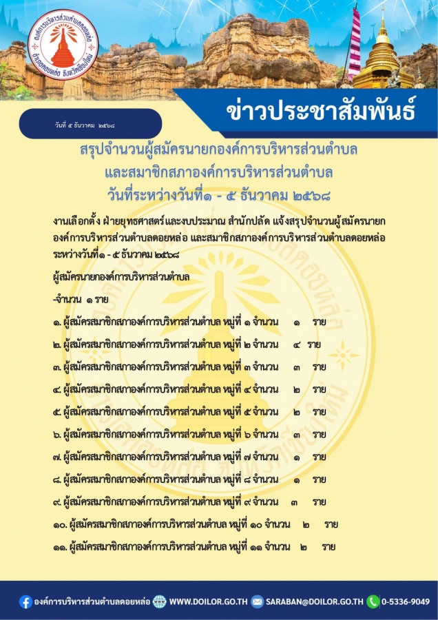สรุปจำนวนผู้สมัครนายกองค์การบริหารส่วนตำบลดอยหล่อ และสมาชิกสภาองค์การบริหารส่วนตำบลดอยหล่อ ระหว่างวันที่ 1 ถึงวันที่ 5 ธันวาคม 2568