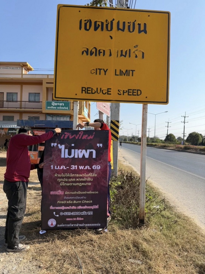 ติดตั้งป้ายโครงการแก้ไขปัญหาไฟป่าและหมอกควัน