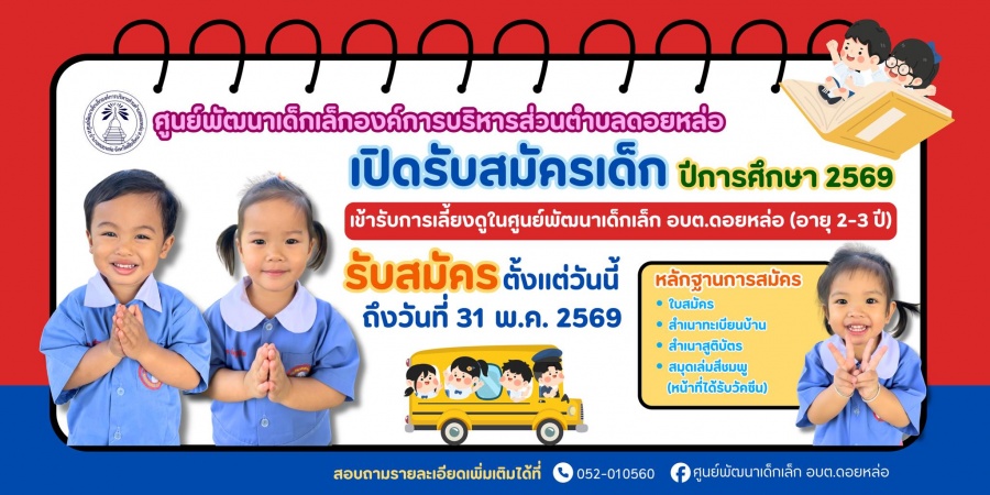 ศูนย์พัฒนาเด็กเล็กองค์การบริหารส่วนตำบลดอยหล่อ เปิดรับสมัครเด็กเล็ก ปีการศึกษา 2569