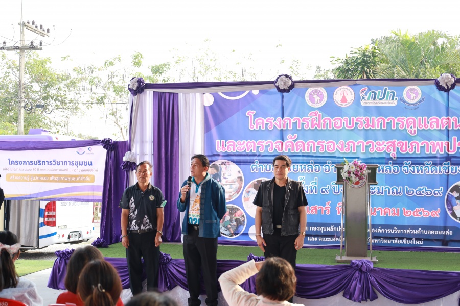 วันที่ 7 มีนาคม 2569 เวลา 08.30 น. นายนเรศ ธำรงค์ทิพยคุณ รัฐมนตรีช่วยว่าการกระทรวงเกษตรและสหกรณ์ เป็นประธานในพิธีเปิดโครงการฝึกอบรมการดูแลตนเองและตรวจคัดกรองภาวะสุขภาพประชาชน โดยความร่วมมือของคณะเทคนิคการแพทย์ มหาวิทยาลัยเชียงใหม่ โดยมี ว่าที่ร้อยตรี สุรพงค์ กาบวัง นายกองค์การบริหารส่วนตำบลดอยหล่อ เป็นผู้กล่าวรายงาน พร้อมด้วยหัวหน้าส่วนราชการ