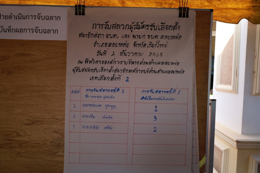 วันที่ 1-2 ธันวาคม พ.ศ. 2568 ศูนย์ประสานงานการเลือกตั้งประจำองค์การบริหารส่วนตำบลดอยหล่อ โดย นายวสันต์ ปัญญาเลิศ ผู้อำนวยการการเลือกตั้งประจำองค์การบริหารส่วนตำบลดอยหล่อ, คณะกรรมการการเลือกตั้งประจำองค์การบริหารส่วนตำบลดอยหล่อ พร้อมด้วยเจ้าหน้าที่ประจำศูนย์ประสานงานการเลือกตั้ง ดำเนินการรับสมัครการเลือกตั้งสมาชิกสภาองค์การบริหารส่วนตำบลดอยหล่อ และนายกองค์การบริหารส่วนตำบลดอยหล่อ ทั้งนี้องค์การบริหารส่วนตำบลดอยหล่อ เปิดรับสมัครเลือกตั้งสมาชิกสภาองค์การบริหารส่วนตำบลดอยหล่อ และนายกองค์การบริหารส่วนตำบลดอยหล่อ ระหว่างวันที่ 1-5 ธันวาคม 2568 เวลา 08.30 - 16.30 น. ณ ที่ทำการองค์การบริหารส่วนตำบลดอยหล่อ อำเภอดอยหล่อ จังหวัดเชียงใหม่