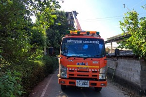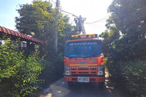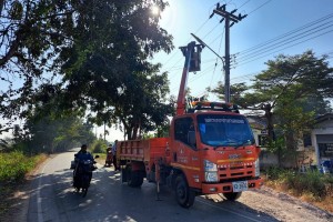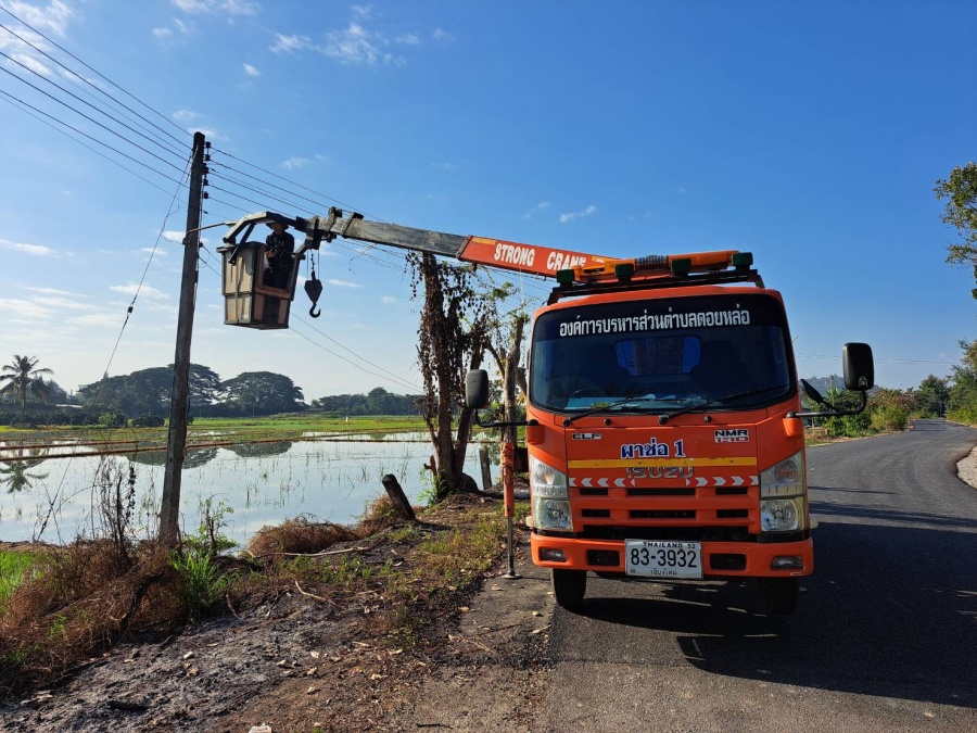 ออกซ่อมแซมไฟฟ้าสาธารณะ (ไฟกิ่ง) หมู่ที่ 4 และหมู่ที่ 12 เพื่อซ่อมแซมไฟฟ้า