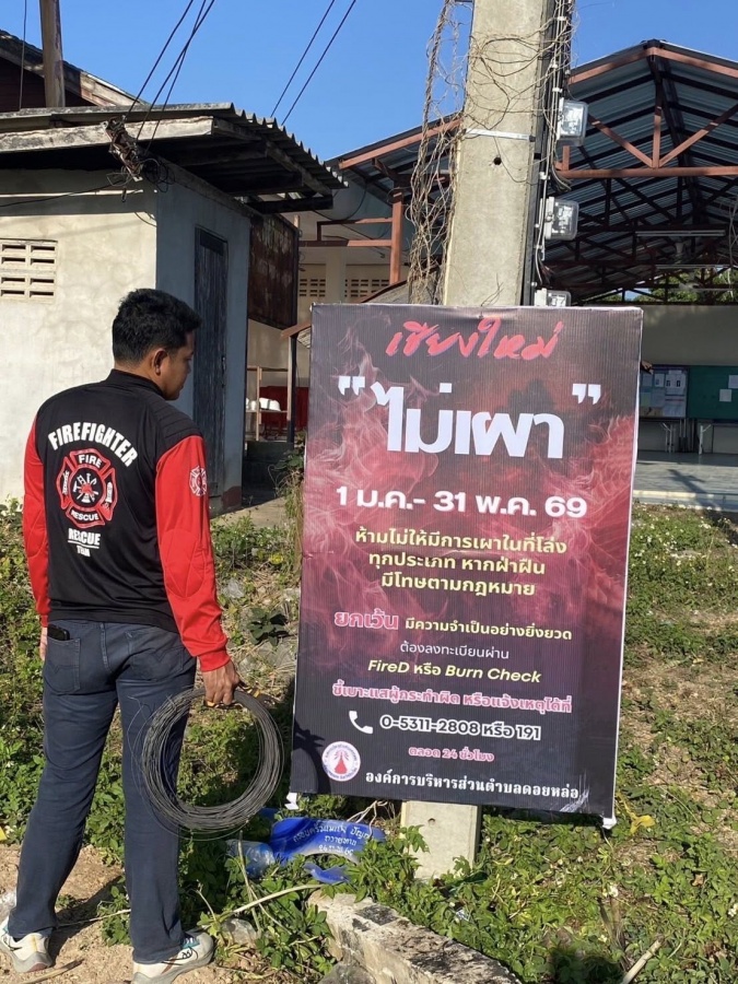 ติดตั้งป้ายโครงการแก้ไขปัญหาไฟป่าและหมอกควัน