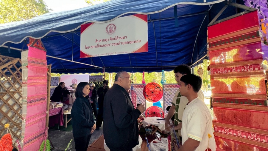 ที่ 22 มกราคม 2569 ในพื้นที่อำเภอจอมทอง และอำเภอแม่วาง โดยมีรัฐมนตรีว่าการกระทรวงการพัฒนาสังคมและความมั่นคงของมนุษย์ (นายอัครา- พรหมเผ่า) เป็นประธานพิธีเปิดโครงการฯ โดยมีวัตถุประสงค์เพื่อส่งเสริมการพัฒนาศักยภาพคนทุกช่วงวัย สนับสนุนการสร้างรายได้ผ่านผลิตภัณฑ์ชุมชน ในการนี้สภาเด็กและเยาวชนตำบลดอยหล่อ ร่วมกับกองการศึกษา ศาสนา และวัฒนธรรม อบต.ดอยล่อ ได้เข้าร่วมเป็นตัวแทนจัดบูธนิทรรศการ สืบสานตุง ศิลป์ล้านนา ณ หอประชุมที่ว่าการอำเภอแม่วาง โดยมีการสาธิตวิธีการทำตุงไส้หมูซึ่งเป็นโครงการที่เด็กและเยาวชนมีส่วนร่วมในการช่วยกันอนุรักษ์ ฟื้นฟู สืบสาน วัฒนธรรมท้องถิ่น และสร้างรายได้ให้แก่ตนเองและชุมชนต่อไป