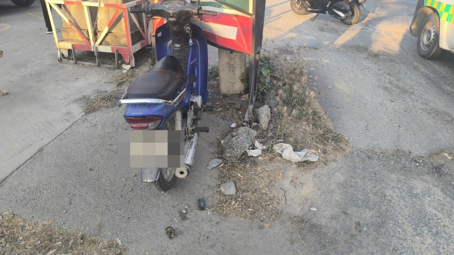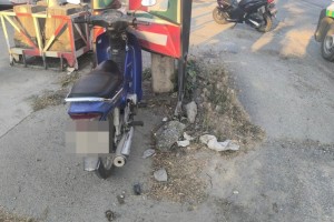 ช่วยเหลือรถจักรยานยนต์พุ่งชนป้าย