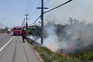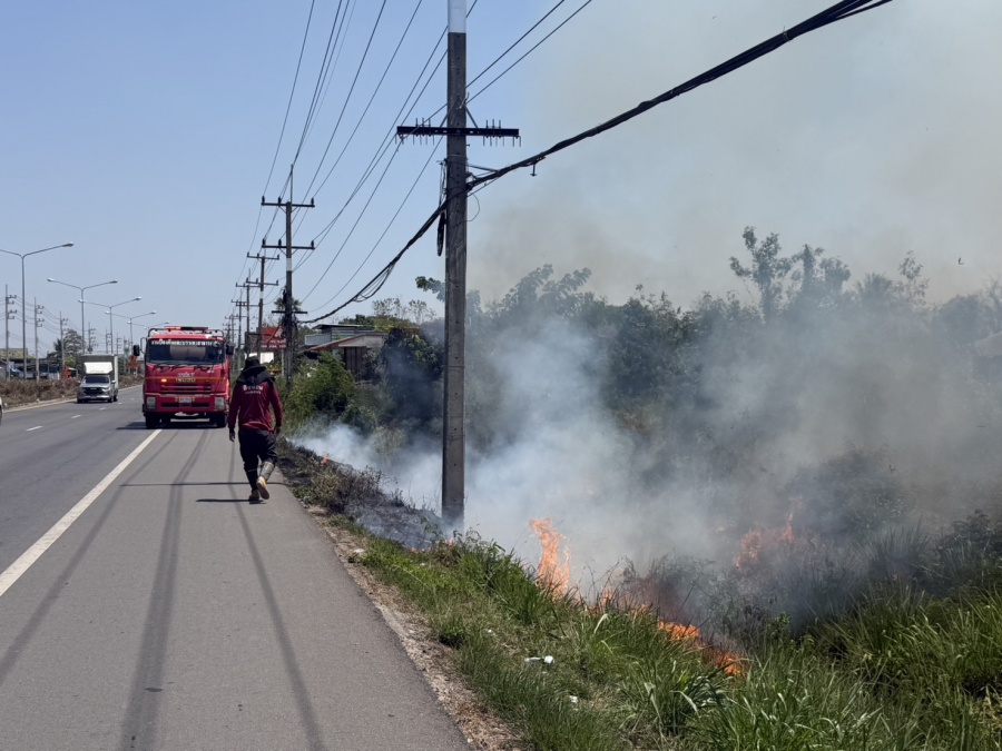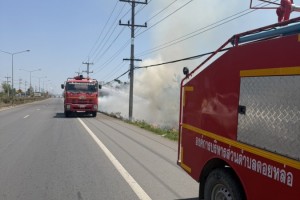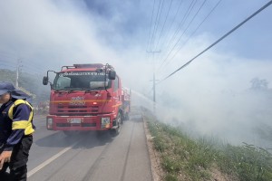 รถบรรทุกน้ำ ทะเบียน ผห 1511เชียงใหม่ ออกควบคุมเพลิงไหม้หญ้า บริเวณข้างทาง